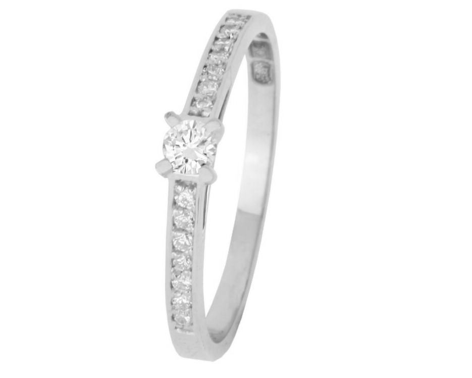 14 karaats gouden solitairring bezet met 15 briljant geslepen diamanten.