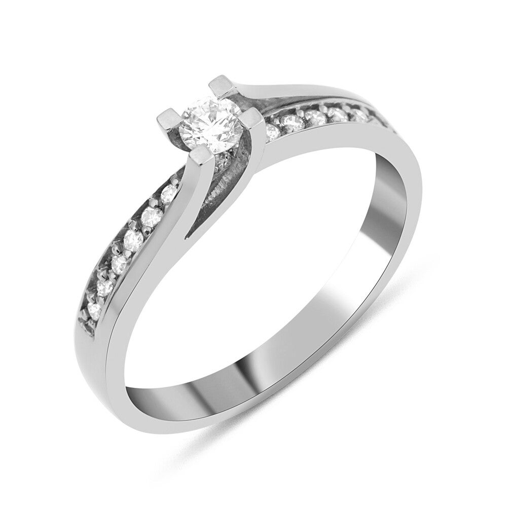 TRI041 14 karaats gouden aanzoeksring bezet met 16 briljant geslepen diamanten.