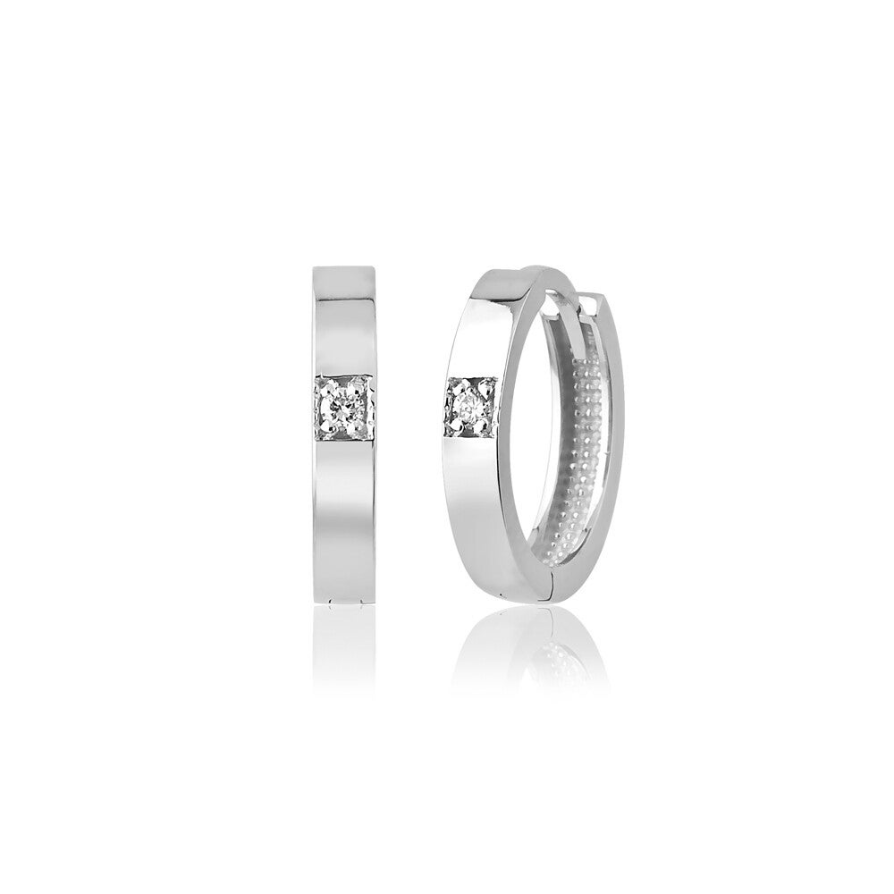 14 karaats gouden scharnier-creolen bezet met twee briljant geslepen diamanten.