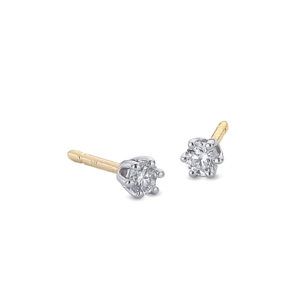 GTD103-10 14 Karaats gouden solitair-oorknoppen met 2 briljanten van 0,10 caraat per stuk.