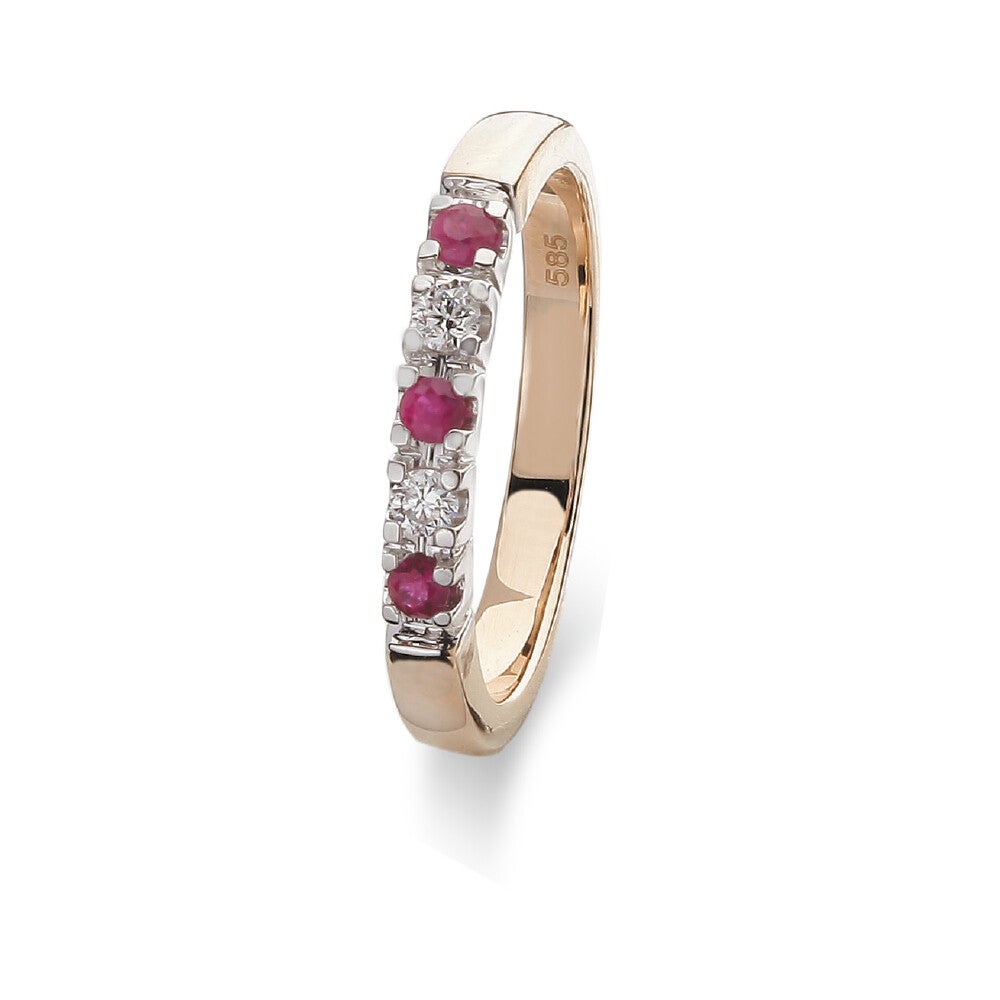 GTD244-R 14 Karaats gouden memoire-ring met een 3 robijnen en 2 briljanten.