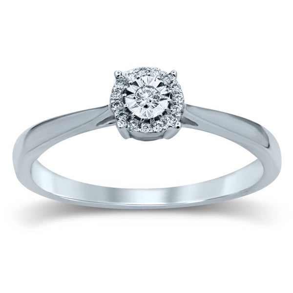 14 karaats gouden aanzoeksring bezet met briljant geslepen diamanten.