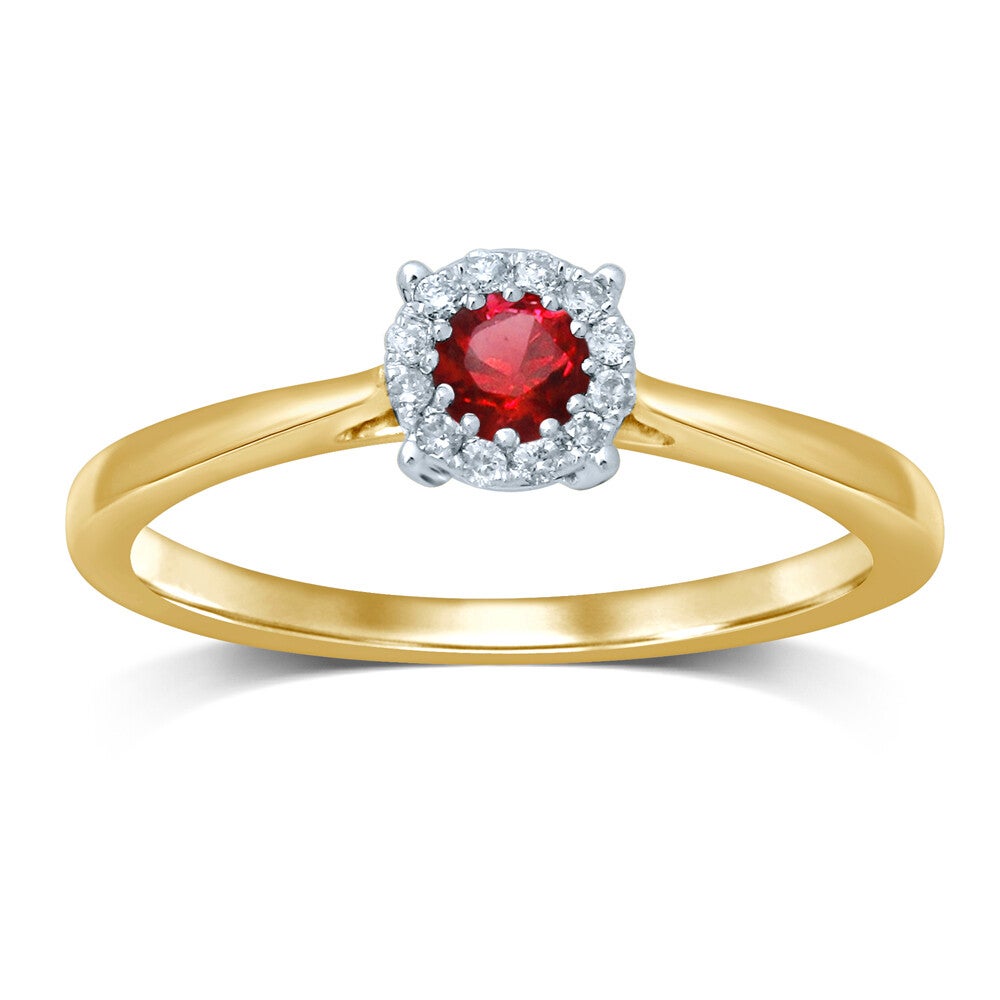 GTX199-R 14 Karaats gouden ring bezet met briljanten en 1 robijn.