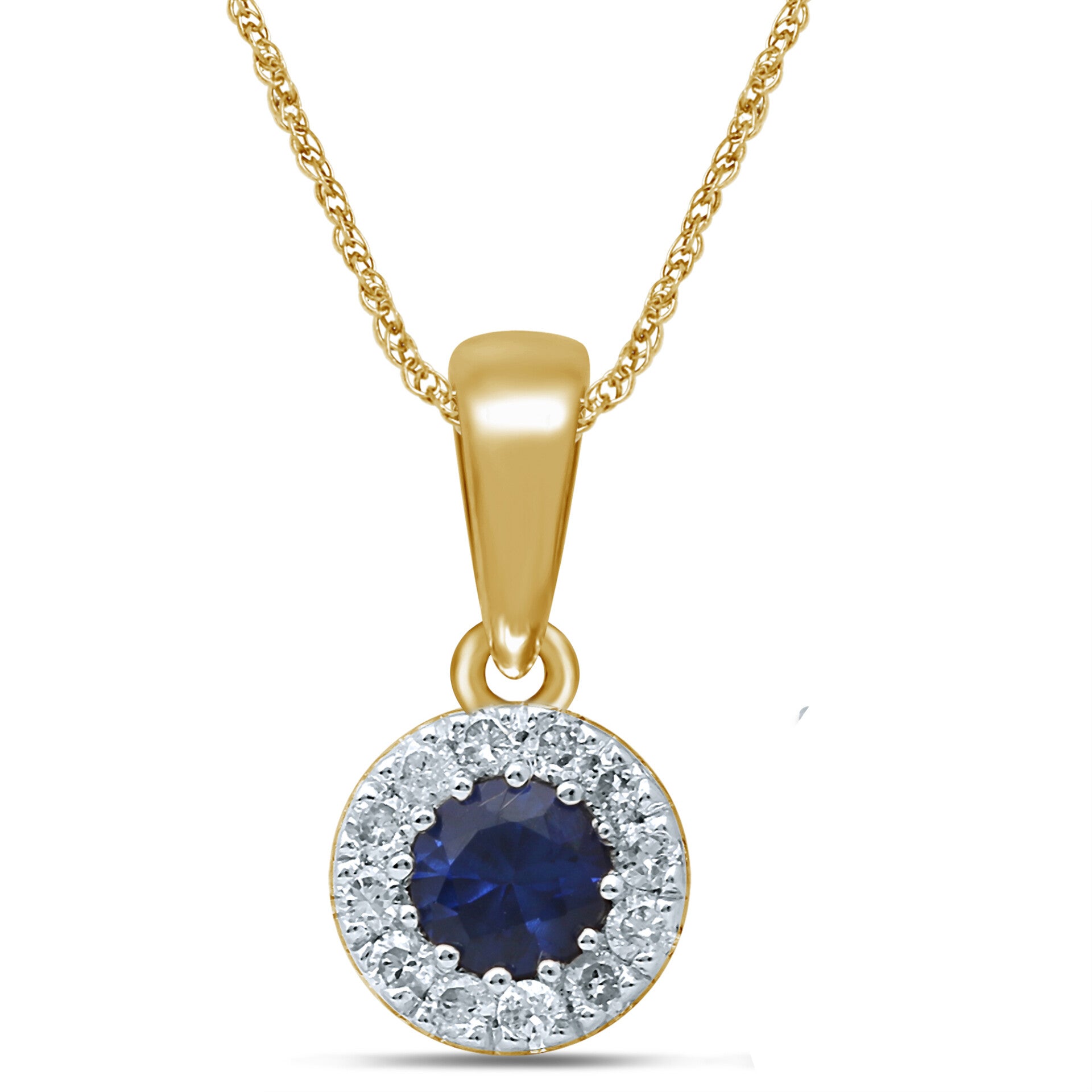 GTD711-S 14 Karaats gouden entourage hanger bezet met briljant en saffier.