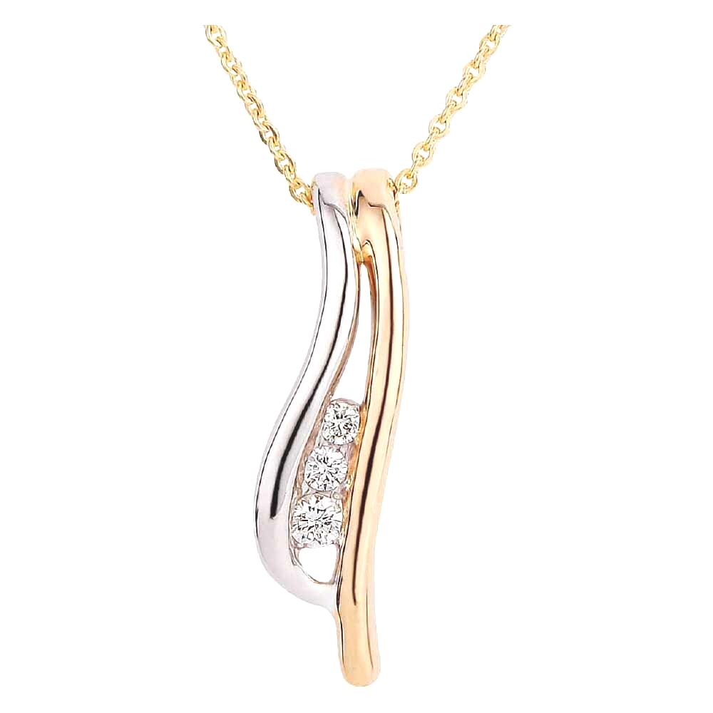 14 karaats gouden bi-color hanger met drie briljant geslepen diamanten. (Excl. collier)