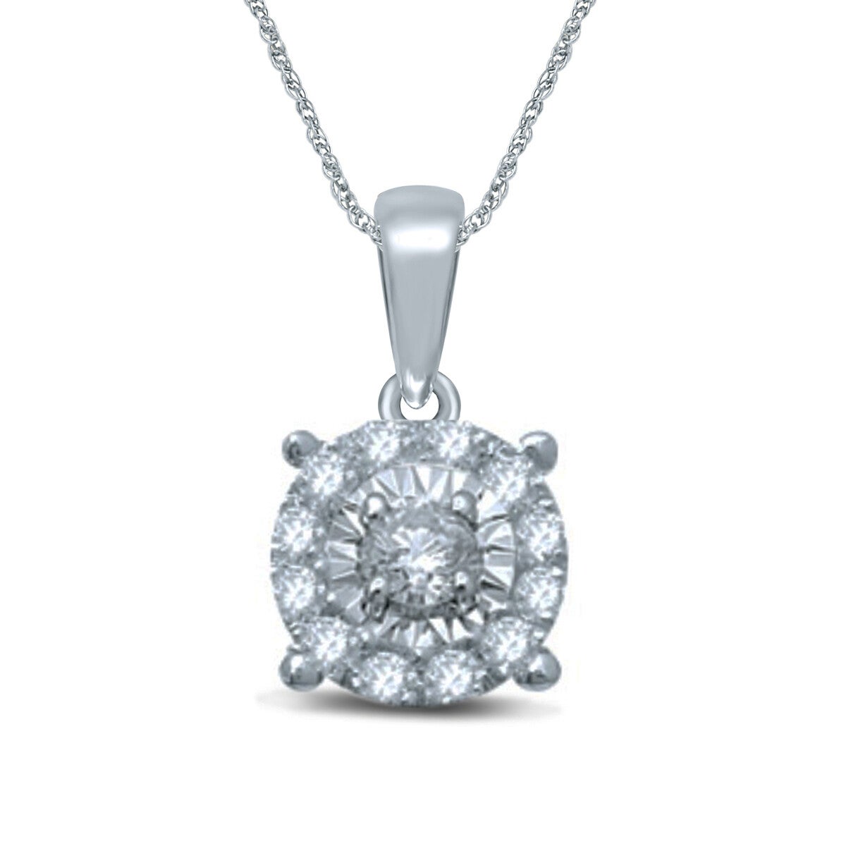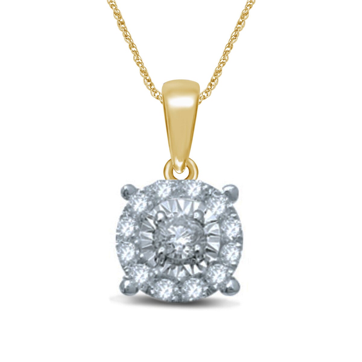 14 karaats gouden entourage-hanger met een briljant geslepen diamant.