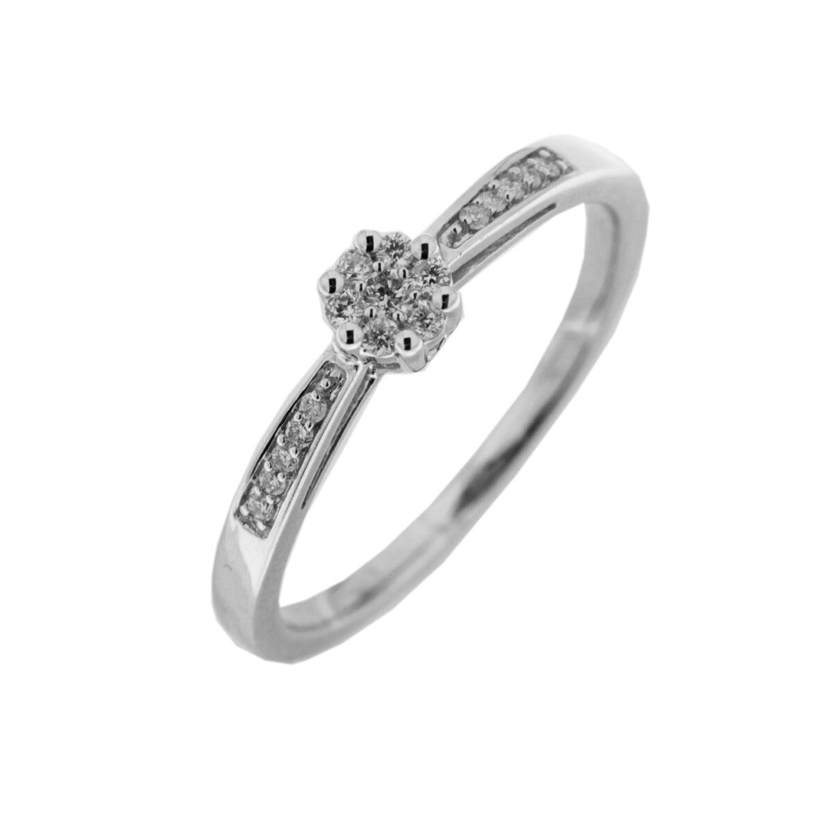 14 karaats gouden entourage-ring bezet met briljant geslepen diamanten.
