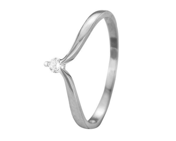 14 karaats gouden V-ring bezet met een briljant geslepen diamant. Gewicht van de ring: ca. 1,28 gram Diamant: Slijpvorm: Briljant Kleur: Wesselton Zuiverheid: SI