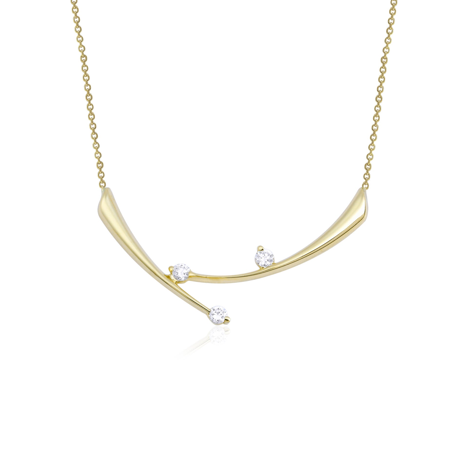 14 Karaats gouden collier bezet met briljant geslepen diamanten.Gewicht van het collier: ca. 2,2 gramDiamantSlijpvorm: briljantKleur: WesseltonZuiverheid: SIGewicht: 3-0,12 crt