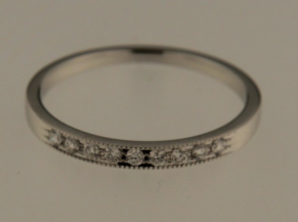 14 karaats gouden rij-ring bezet met briljant geslepen diamanten.Gewicht van de ring: ca. 1,8 gramDiamantSlijpvorm: BriljantKleur: WesseltonZuiverheid: SIGewicht: 9- 0,15 crt