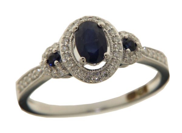 14 Karaats goudenfantasie ring met briljanten en saffieren.Gewicht: ca. 2,6 gramDiamant:Slijpvorm: briljantKleur: WesseltonZuiverheid: P2Gewicht: 0,20 caraat