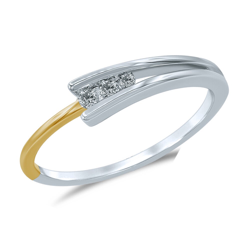 14 karaats gouden fantasie ring met drie briljant geslepen diamanten.