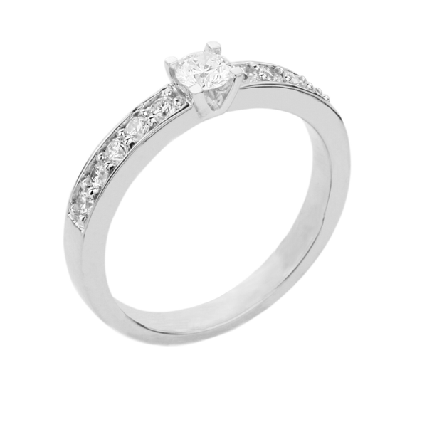 14 karaats gouden solitair-ring bezet met briljant geslepen diamanten.