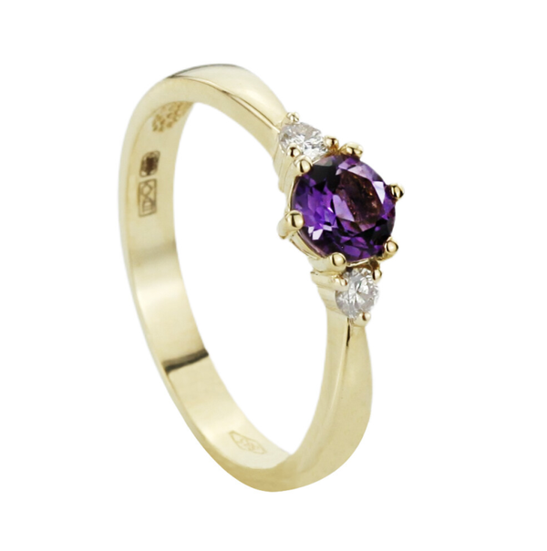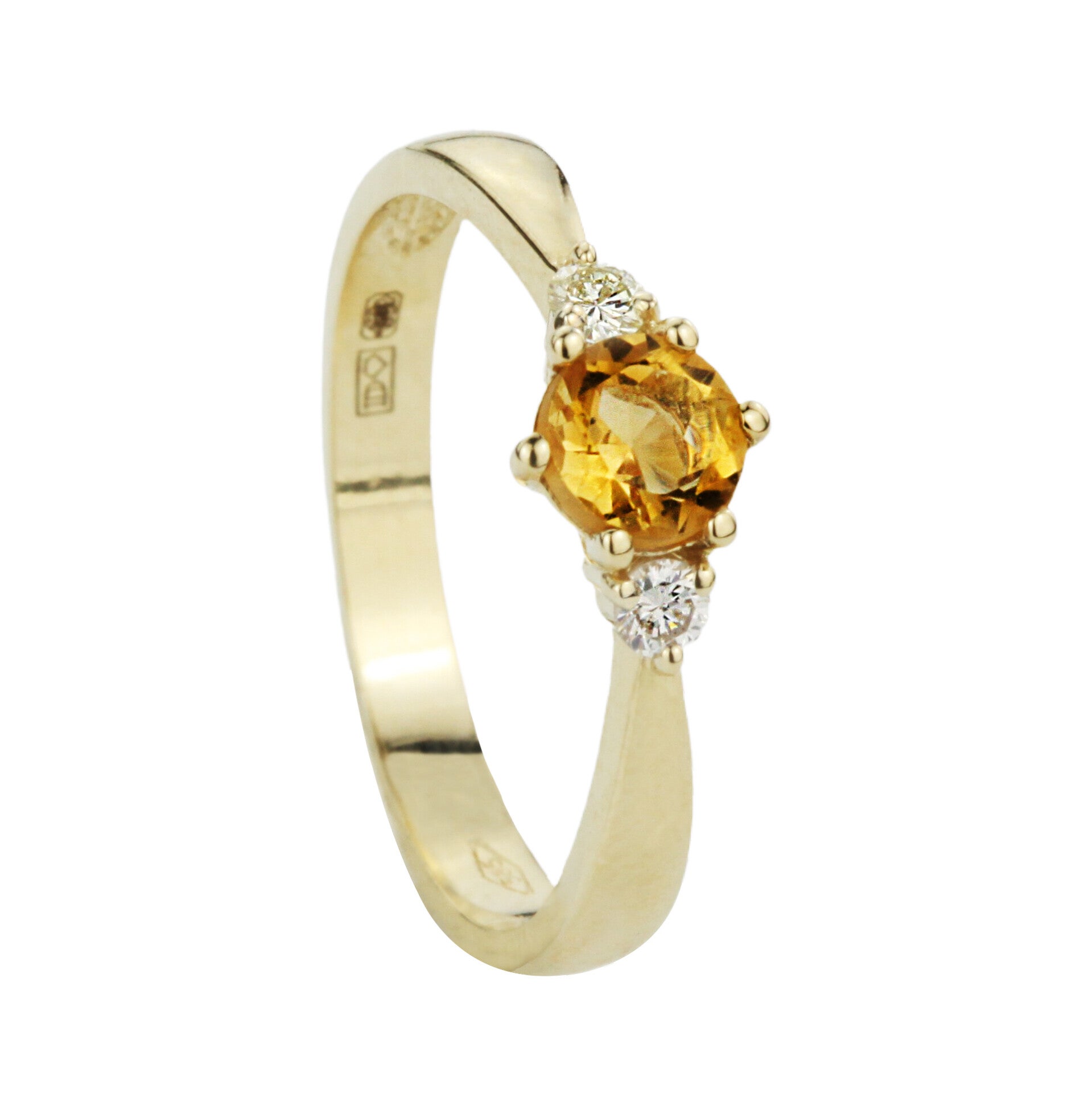 14 Karaats gouden solitair-ring bezet met een ronde kleursteen.Gewicht van de ring: ca. 2,3 gramMaat van de steen: 5 mm